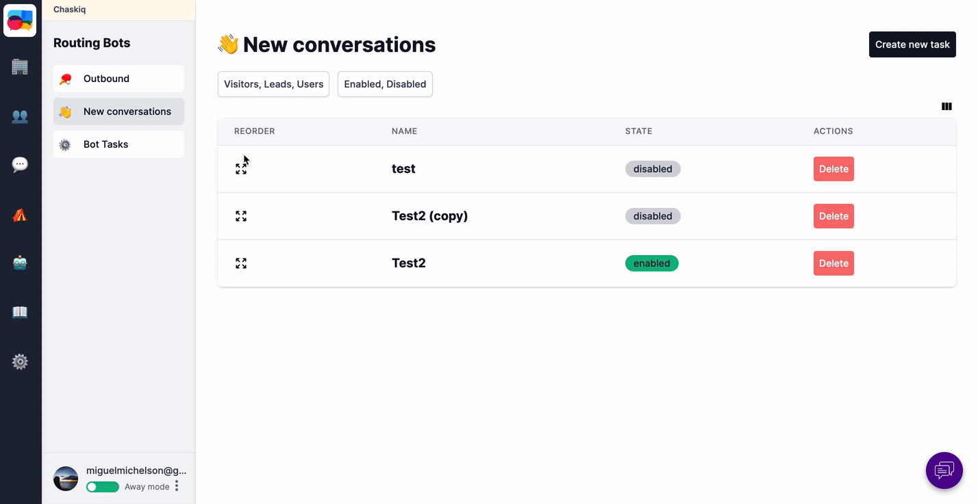 A major addition is the conversation starter bots. Until now, bot flows only occurred outbound, now we add inbound flows, that is, when the visitor starts a conversation.